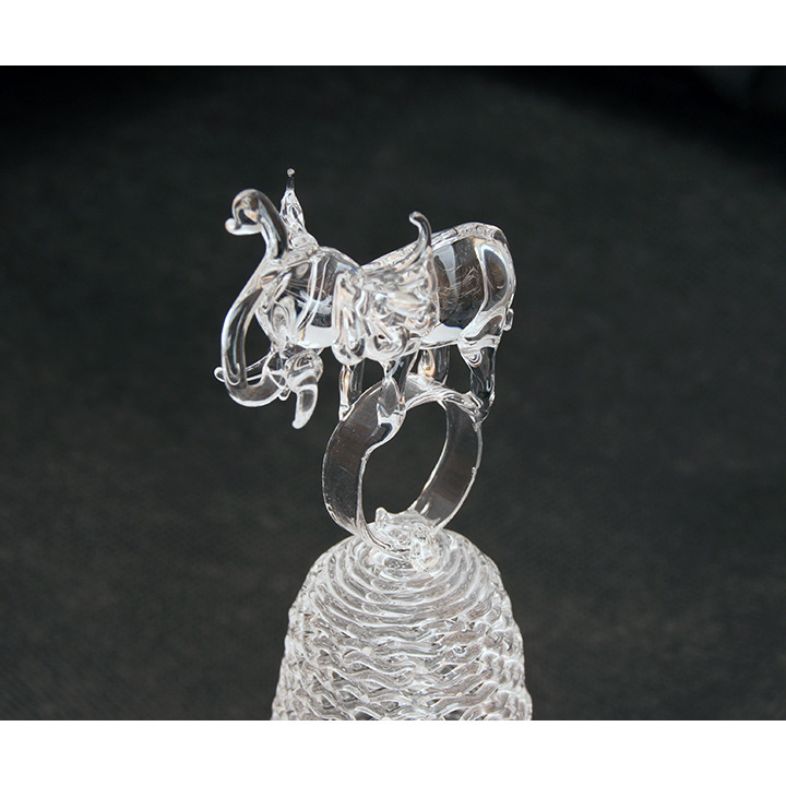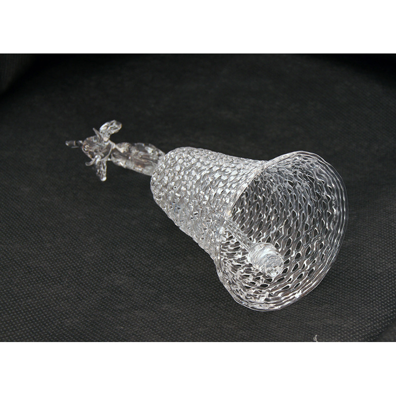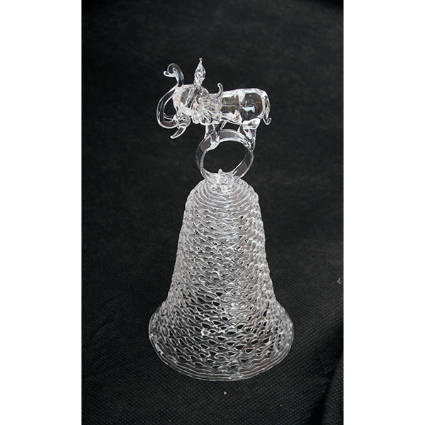 Изготовлен колокольчик вручную из тонких прутиков кварцевого стекла - чистого минерального стекла, которое иначе именуется горным хрусталем, так как имеет абсолютно схожий состав - чистый диоксид кремния.