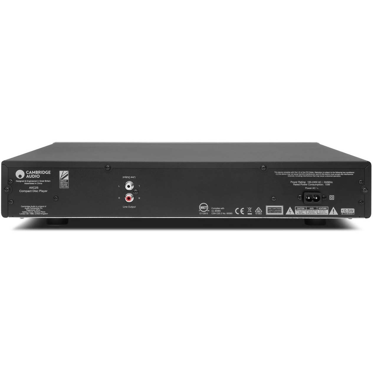 На тыльной стороне корпуса проигрывателя находится аналоговый линейный выход, использующий разъемы RCA. «Командовать» данной моделью можно с помощью входящего в комплект пульта, который также позволяет управлять фирменным интегральным усилителем AXA35. Идеальными партнерами для работы в связке с Cambridge Audio AXC25 станут интегральники AXA25 и AXA35. Тем не менее, данный проигрыватель отлично проявит себя и в тандеме с усилителями сторонних производителей.