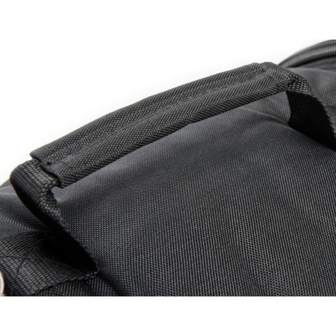 Чехол выполнен из прочного нейлона с усиленной строчкой, который защитит инструмент от попадания влаги. Для комфортной транспортировки он оснащен мягкой ручкой и заплечным ремнем с возможностью регулировки длины. Для большей надежности и комфорта чехол оснащен двойной молнией. На наружной стороне чехла предусмотрен небольшой карман для аксессуаров на молнии. Он предназначен для барабанов размером 12" х 12".