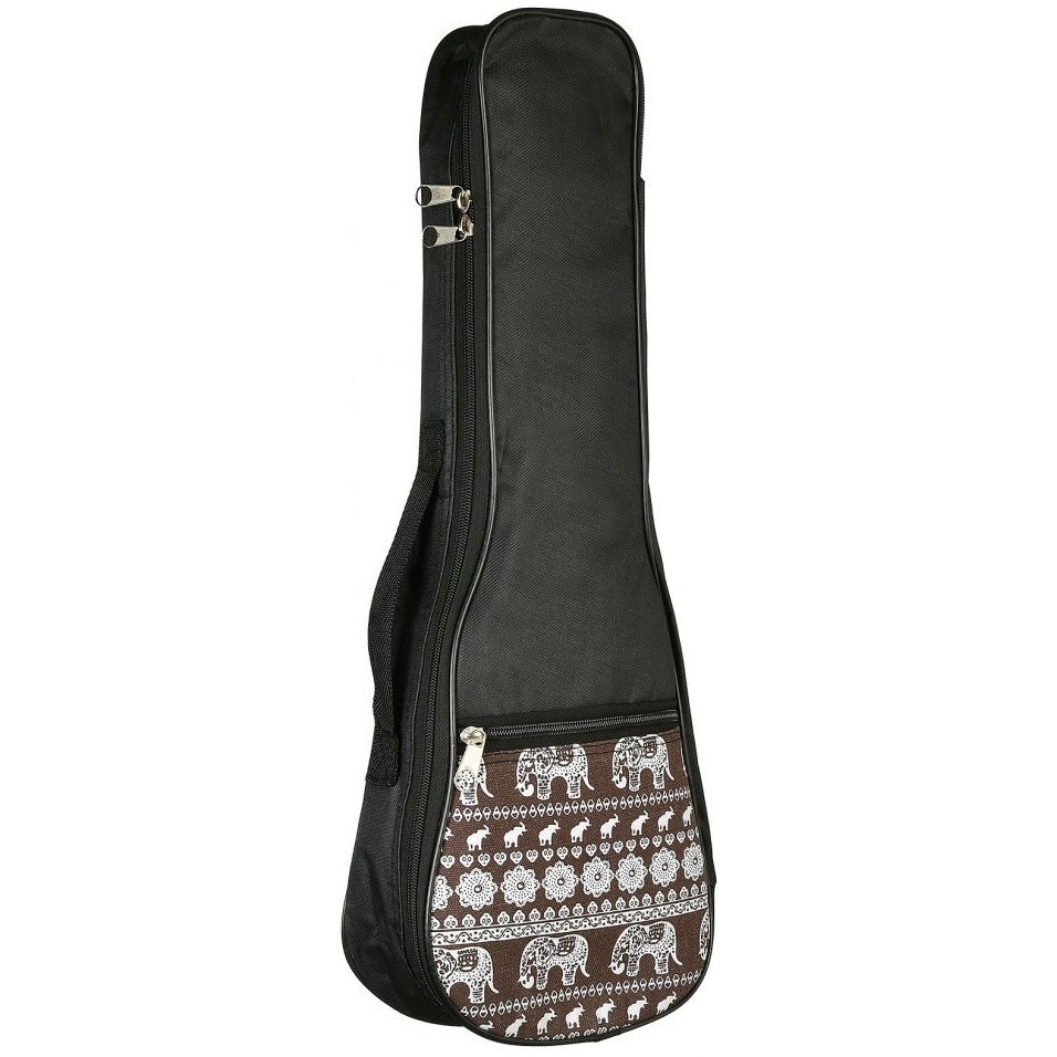 MARTIN ROMAS УС-21-13 - Чехол для укулеле сопрано размер 21", утеплённый, цвет - чёрный с разноцветным карманом в виде рисунка слонов.