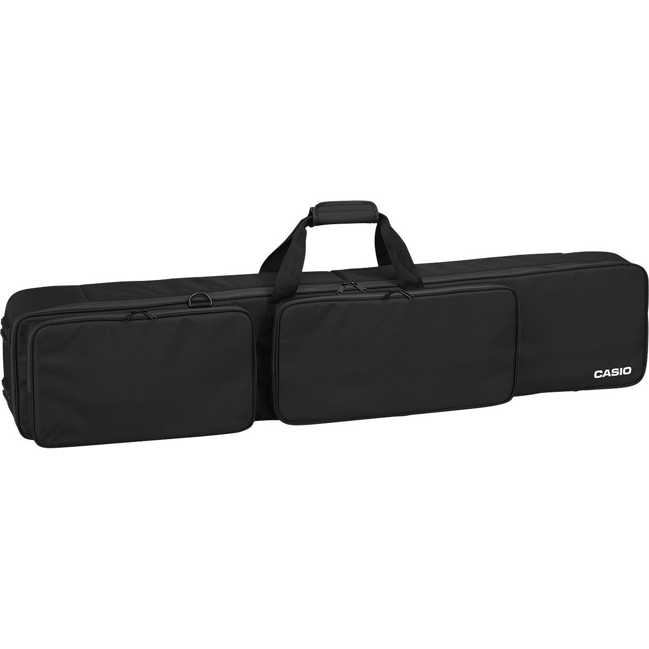 Casio SC-800P - это фирменный водонепроницаемый чехол для цифровых пианино. Данный чехол отличается прочностью и лаконичностью. Возможны три варианта носки - в руках, через плечо и на спине (в качестве рюкзака). Чехол выполнен из глянцевой черной нейлоновой ткани, оснащен двумя карманами для хранения педального блока/педали сустейн, нотной тетради, подставки для нот и адаптера. Легок и удобен в использовании. Оборудован чехол надежной ручкой длиной 50 см и пятью нескользящими резиновыми ножками. Инструмент без проблем можно транспортировать в дождливую погоду: чехол выполнен из водонепроницаемой ткани, а молния обладает водоотталкивающим эффектом. Изнутри инструмент также защищен, благодаря толстому прокладочному материалу.