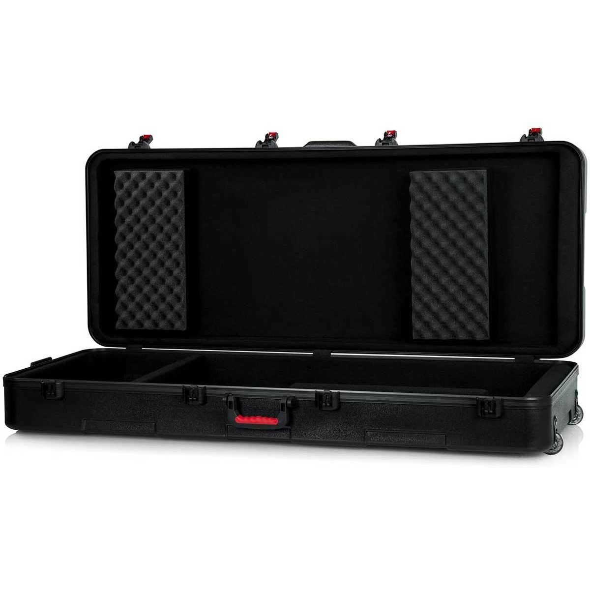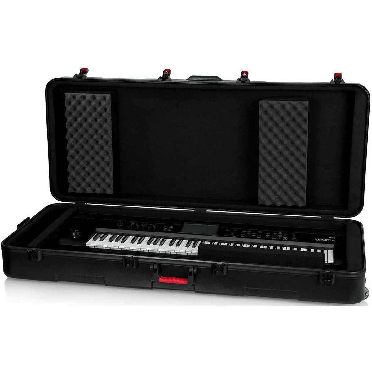 Пластиковый кейс Gator GTSA-Key76D, совместим с клавишными инструментами на 76 кл. Основное отличие в том, что кейс вмещает более высокие инструменты. Конструкция обладает повышенной прочностью и крепкой конструкцией. Изготовлен из ударопрочного АБС пластика, который способен выдержать большие нагрузки и падения. Для транспортировки предусмотрена эргономичная ручка а также выдвижная при перемещении на колесах. Внутренняя обивка мягкая, для защиты инструмента, и также прочной его фиксации. Имеется боковой отсек для педалей и кабелей. Замки TSA надежны, долговечны и имеют ключ блокировки.