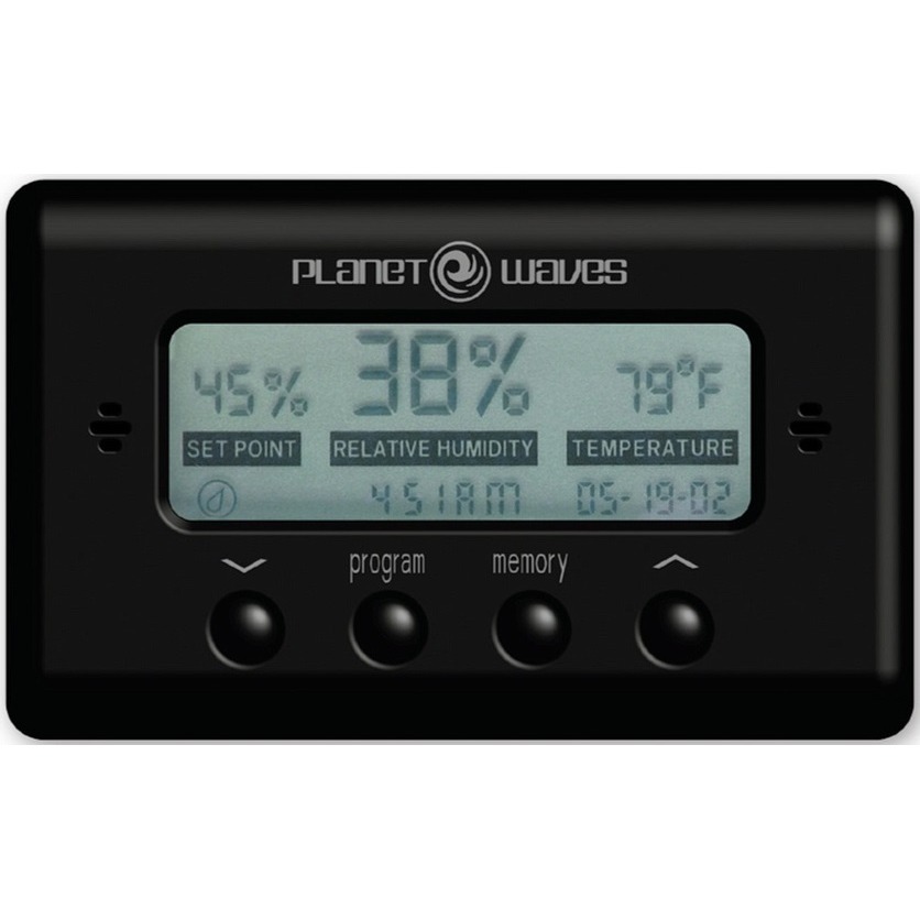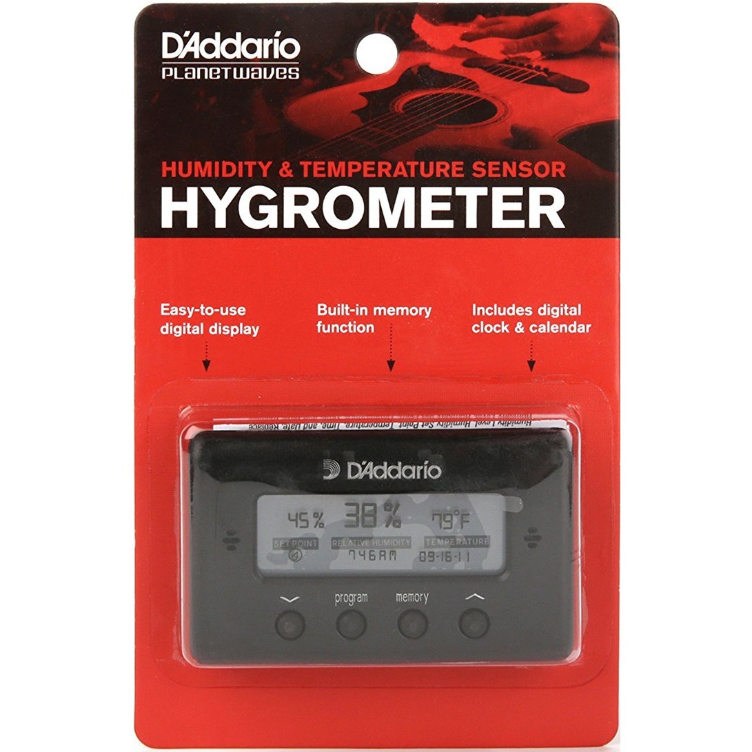 Датчик уровня влажности и температуры Planet Waves — это точный гигрометр, в цифровом виде выдающий информацию об относительном уровне влажности в диапазоне от низкой (ниже 20%) до 99%. Температура отображается как в градусах Фаренгейта, так и в градусах Цельсия, в диапазоне от -32°F до 122°F (-35C до 50C). Возможно программирование контрольных точек и запоминание датчиком даты/времени самых высоких/низких значений влажности/температуры. Приобретение и использование увлажнителя с датчиком влажности/температуры в кейсе каждого инструмента — мудрое вложение денег.