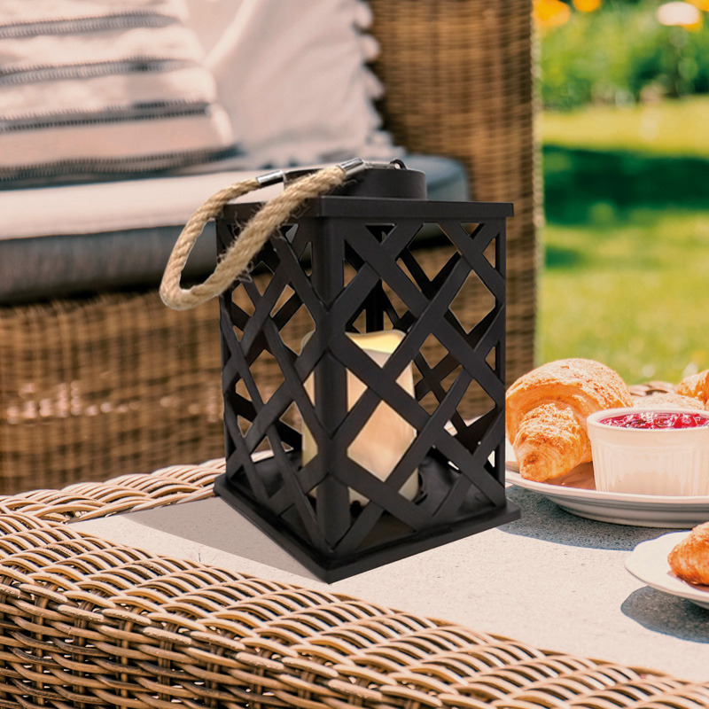 Декоративный фонарь на солнечной батарее Neon-Night 501-145 14х14х24 см, черный плетеный корпус, теплый белый цвет свечения