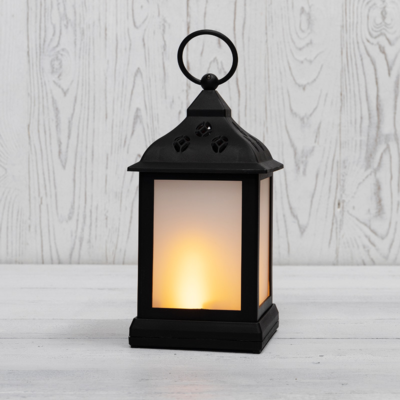 Декоративный фонарь с эффектом пламени свечи в корпусе черного цвета станет прекрасным украшением интерьера, которое гармонично дополнит обстановку, внесет нотку тепла и уюта, подарит ощущение комфорта хозяевам и гостям. В центре композиции находится небольшая пластиковая свеча, которая светится теплым белым светом и имитирует мерцание настоящего пламени. Светодиод получает питание от 3 батареек типа ААА. Декоративный фонарь — это замечательный подарок к празднику, который вызовет улыбку и оставит приятные воспоминания.
