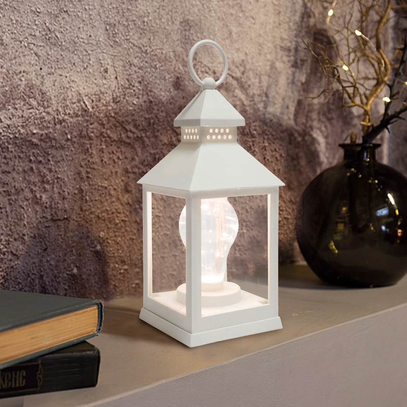 Купить декоративный фонарь с лампочкой Neon-Night 513-052 белый корпус, размер 10.5х10.5х24 см, цвет ТЕПЛЫЙ БЕЛЫЙ