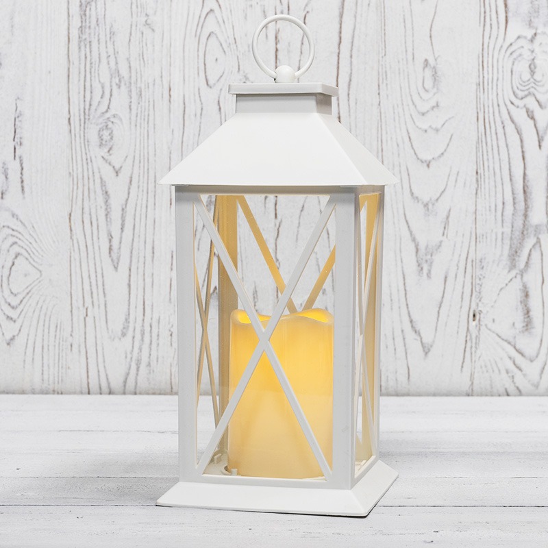 Декоративный фонарь со свечой Neon-Night 513-046 14x14x29 см, белый корпус, теплый белый цвет свечения