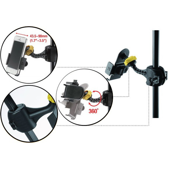 Hercules DG200B держатель для смартфона. Используйте держатель во время работы, чтобы обеспечить безопасность Вашего смартфона или другого мультимедийного устройства, а также устойчивость и досягаемость. Этот держатель отлично подходит к любой стойке и позволяет устанавливать различные девайсы с шириной от 44 до 90 мм.