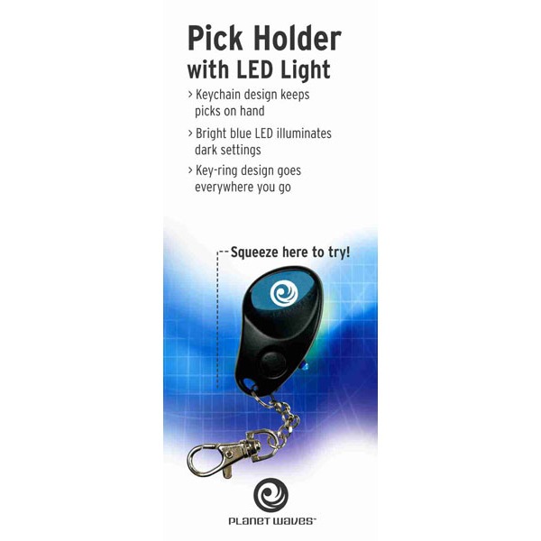 Держатель для медиаторов с фонариком Planet Waves Pick Holder Keychain with LED вмещает 4-5 медиаторов средней толщины и освещает темные места ярко-синим светодиодом. Благодаря этому держателю медиаторы будут с вами, куда бы вы ни шли. А также вы можете подсветить себе путь на сцену или усилитель и педаль для настройки. Отлично подходит для использования на связке ключей или в качестве брелока на кейсе инструмента.