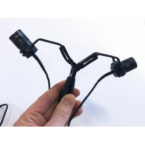Два крючка в середине держателя предназначены для конфигурации XY стерео, а два выступа в сторону предназначены для ORTF стерео. Можно использовать оба стерео настройки одновременно. Легкий держатель является очень удобным и практичным инструментом монтажа на единой стойке компактных микрофонов DPA.