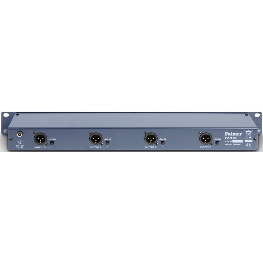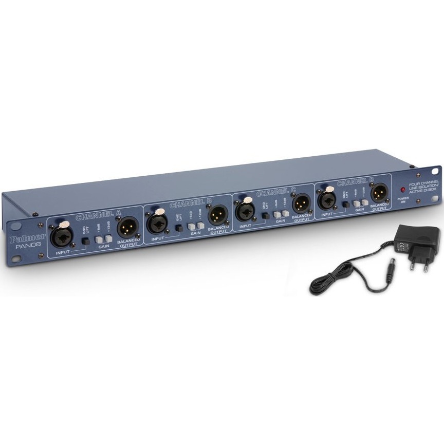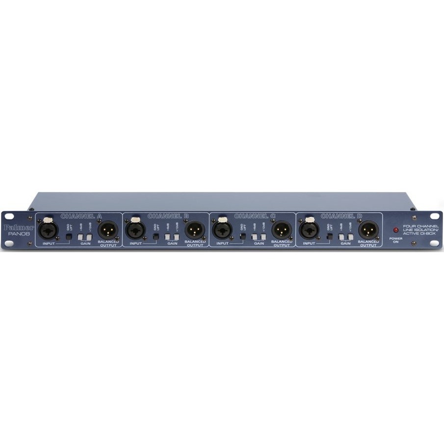 PAN08 - многофункциональное устройство. Любой из четырех каналов может использоваться независимо как активный ди-бокс, линейный изолятор или бустер. На комбинированный вход XLR/TRS можно подавать балансные или небалансные сигналы. Каждый канал имеет два балансных выхода на разъёмах XLR, по одному на передней и задней панелях устройства.