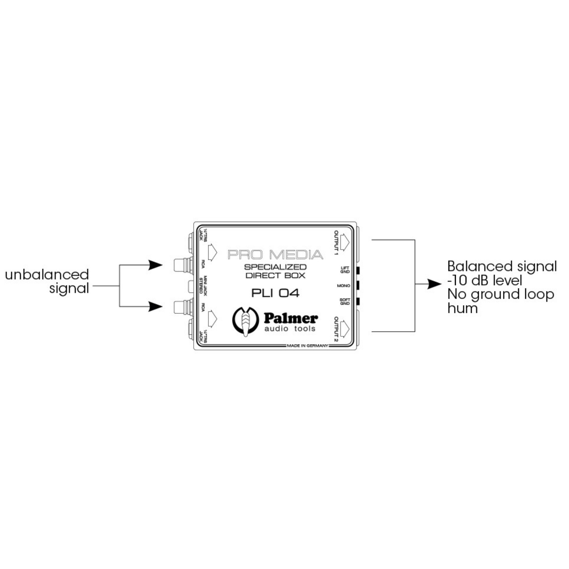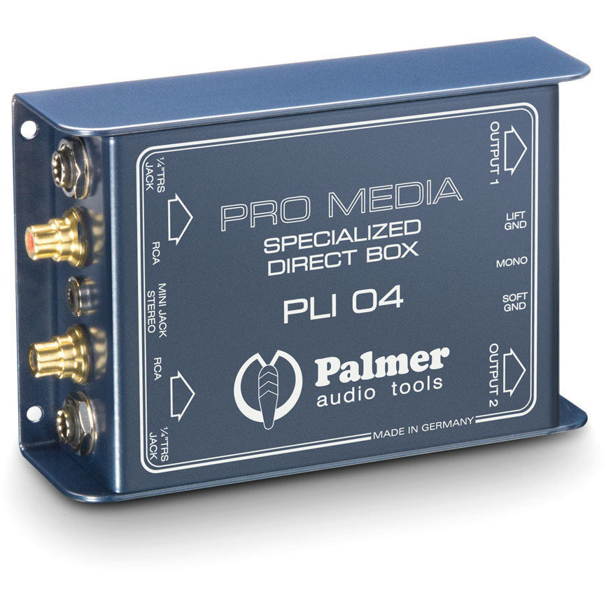 PRO MEDIA DI / PLI-04. Новый PLI 04 представляет ди-бокс/изолятор, созданный с учетом требований компьютерного времени. Благодаря этому прибору персональные компьютеры и другое потребительское оборудование с небалансными выходами могут быть подключены к профессиональной системе PA с балансными входами. PLI-04 совмещает все основные типы входных разъёмов, таких как TRS, позволяющие подключать моно или стерео сигналы, RCA и аудиоразъем 3,5 мм TRS (minijack) для использования с выходом для наушников портативного компьютера или аналогичного устройства. Выходы представляют собой обычные симметричные XLR-разъемы, которые используются в профессиональных системах PA, гарантируя электрическое согласование между источником и приёмником звука, что является необходимым условием для обеспечения бесшумной работы. Еще одна особенность, которую нельзя забывать! Хотя PLI-04, в-основном, представляет собой стерео устройство, его можно переключить на моно, при этом два стерео сигнала суммируются и подаются на оба выхода XLR. PLI-04 обладает механически прочной конструкцией в сочетании с выдающимися техническими характеристиками, что является характерным для всей продукции компании Palmer.