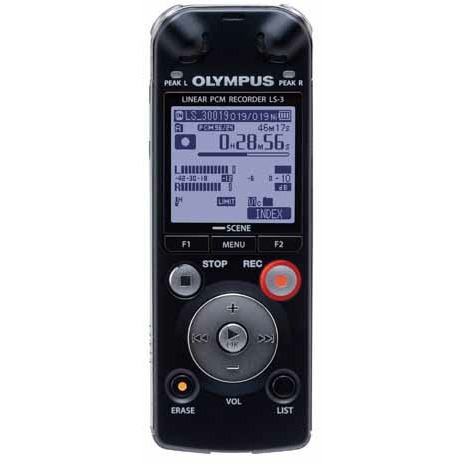 С диктофоном Olympus LS-3 вам доступно все: высочайшее качество звука, удобное управление и надежность, компактный корпус, который поместится в любой карман. Несмотря на небольшой вес - всего 90г - и компактный дизайн, этот диктофон сможет вас удивить. К вашим услугам высочайшее качество звука в формате РСМ (24бита/96кГц), два направленных микрофона, расположенных под углом 90°, и разнонаправленный центральный микрофон с повышенной чувствительностью к басам. Вам понравится функция предварительной записи, которая позволяет начать запись за 2 секунды до нажатия кнопки записи. Встроенная память объемом 4ГБ позволит вам вести запись в формате мр3 (128кб/сек) в течение 65 часов. Если же этого мало, то вы можете расширить память с помощью карт памяти microSD(HC). Кроме этого, LS-3 поставляется в комплекте с аккумуляторами и поддерживает зарядку от USB. Неважно кто вы, музыкант, записывающий репетицию, любитель природы, журналист или просто любитель высококачественного звука - LS3 станет идеальным выбором для вас.