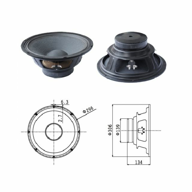 Динамики для акустических систем, 12", диапазон частот 0.05-5 кГц, звуковое давление 96 Дб, сопротивление 8 Ом, мощность 150 Вт