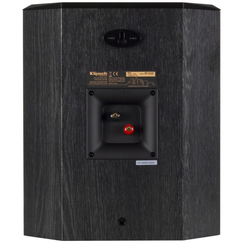 Klipsch RP-502S выполнена по запатентованной технологии WDST, которая позволяет получать равномерное окружающее звуковое пространство, в том числе и при неидеальном с точки зрения теории размещении акустики в комнате. Klipsch RP-502S оснащена двумя одинаковыми комплектами излучателей (твитер + басовик) на расположенных под углом друг к другу фронтальных панелях. Такое решение обеспечивает наиболее полную реализации концепции дипольной тыловой акустики для получения равномерного окружающего пространства.