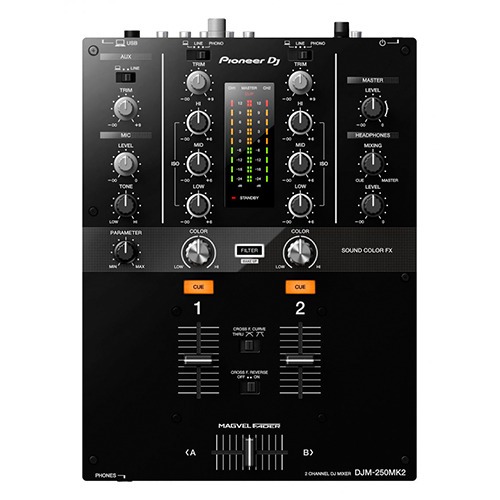 DJM-250MK2 унаследовал важные профессиональные функции флагманского микшера DJM-900NXS2, такие, как кроссфейдер Magvel или фильтры Sound Color FX. Удобное расположение органов управления, интуитивно понятный интерфейс и специальные 3-полосные изоляторы помогут вам скретчить и сводить легко и непринужденно.