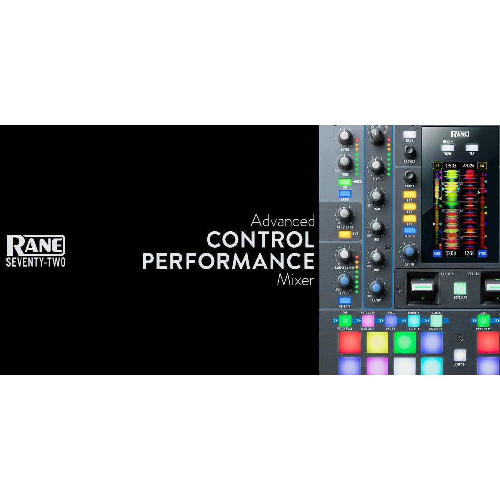 Rane SEVENTY-TWO - Профессиональный 2х канальный dj микшерный пульт, встроенный USB аудио интерфейс 24 bit / 48 kHz, поддержка DVS, FX и Filter, AUX, сенсорный дисплей 4.3", 2 микрофонных входа, 2 USB порта, Serato DJ в комплекте.
