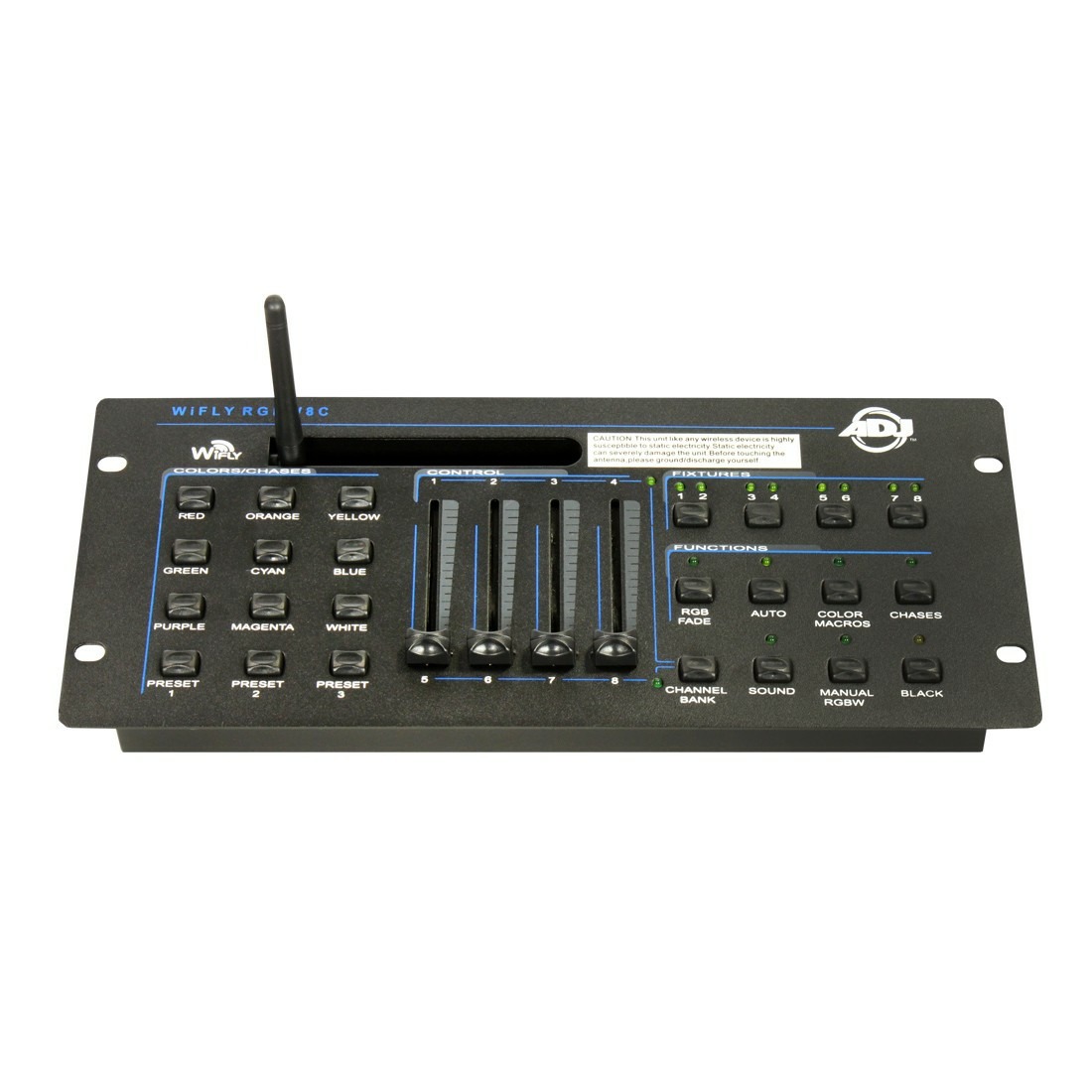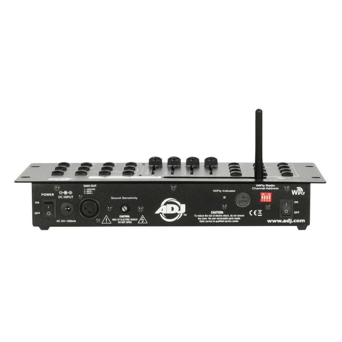 - Компактный контроллер DMX-512 для светодиодных устройств RGB, RGBW и RGBA с беспроводным управлением по приемопередатчику ADJ WiFLY Transceiver (также совместим с кабелями DMX)