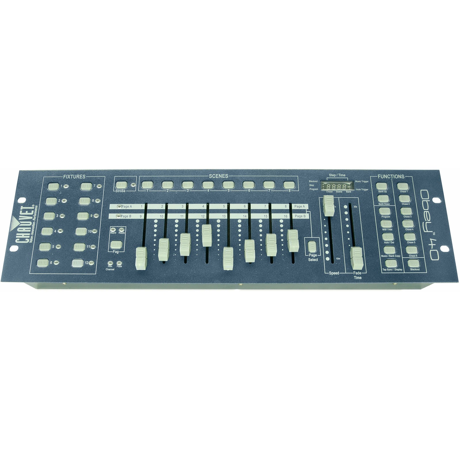 Chauvet Obey 40 является следующим шагом по сравнению с Obey 10, что позволяет контролировать до 12световых приборов на 16 каналов каждый.