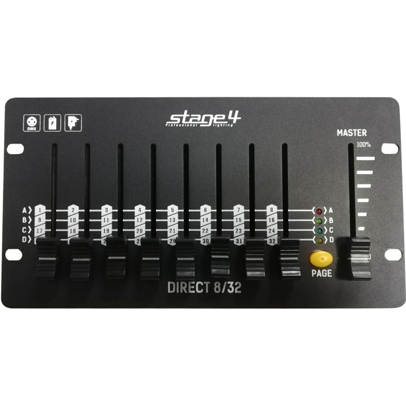 DIRECT 8/32 – это простой DMX-контроллер для прямого управления различными световыми приборами. Самое простое и интуитивно-понятное управление. Всего 4 страницы по 8 каналов на каждой. Каждой странице соответствует свой цветной led-индикатор, а переключаются страницы по очереди нажатием всего одной кнопкой. Всего для управления доступно 32 DMX-канала.