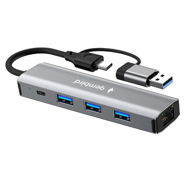 Док-станция Type-C + USB Gembird UHB-D7 5в1: 3хUSB3.1, Type-C, RJ45, кабель 15см, алюминий