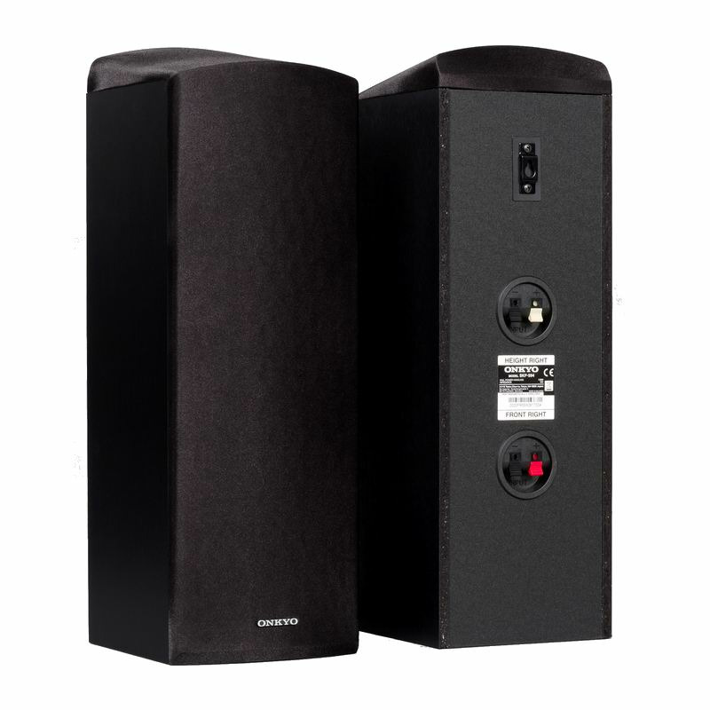 Акустика системы имеет небольшие размеры для удобного размещения в комнате прослушивания, и в то же время способна обеспечить насыщенный и динамичный звук. Основой комплекта является фронтальная стереопара, колонки которой имеют комбинированную конструкцию. Основная секция, состоящая из 25-мм твитера со сбалансированным куполом и 120-мм басовика – озвучивает стереоканалы. Дополнительная, образованная 80-мм широкополосником, направлена под углом вверх для формирования высотных каналов Dolby Atmos. Также в Onkyo HT-S5915 входит АС для центрального канала, а также пара тыловых колонок и сабвуфер с направленным в пол 200-мм НЧ-динамиком.