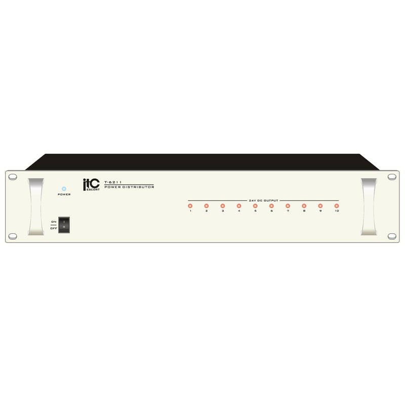 Распределитель питания ITC ESCORT T-6211 входит в состав системы оповещения ITC-ESCORT и используется для построения систем автоматического аварийного оповещения и музыкальной трансляции на базе дополнительного оборудования. Данный блок предназначен для подачи напряжения питания 24 на такие устройства как: аттенюаторы, селекторы зон (с встроенными реле принудительного включения), световые табло, другие устройства имеющие питание 24В. Данным блоком можно запитать до 10 направлений. Напряжение питания на нужном направлении возникает автоматически при поступлении на вход блока ITC ESCORT T-6211 управляющих сигналов (в виде сухого контакта). Питание ITC ESCORT T-6211 осуществляется от переменного напряжения 220В. Конструктивно блок выполнен в рэковом 19-дюймовом корпусе, предназначенном для монтажа в стандартный электротехнический шкаф.