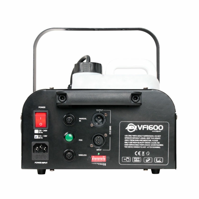 American DJ VF1600 генератор дыма мощностью 1500 Вт, который отлично подходит для мобильных артистов, больших ночных клубов и баров, церквей, центров боулинга и представлений со спецэффектами, когда нужно создать особую атмосферу и украсить спецэффектами лучи света от осветительных устройств. Устройство VF1600 оснащается высокоэффективным нагревателем, который быстро нагревает жидкость для дыма. Устройство поставляется с навесным баком жидкости для дыма объемом 2,3 л и имеет индикатор уровня жидкости. Кроме того, оно поставляется с проводным пультом дистанционного управления. В нем используется жидкость для дыма на водной основе. Передовые функции – DMX, технология электронного термоконтроля (ETS) для оптимального нагрева и датчик отключения при низком уровне жидкости для защиты насоса. Отдельно предлагается оптимальный беспроводной пульт дистанционного управления.