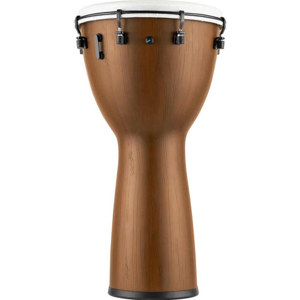 Увеличение громкости иногда необходимо для перкуссионных выступлений на открытом воздухе или живых выступлениях. Этот 100% синтетический джембе оснащен пьезо-звукоснимателем а также регулятором громкости для подключения к усилителю или аудиосистеме. Джембе обеспечивает потрясающие низкие и высокие частоты - идеально подходит для барабанных кругов или крупномасштабных выступлений.
