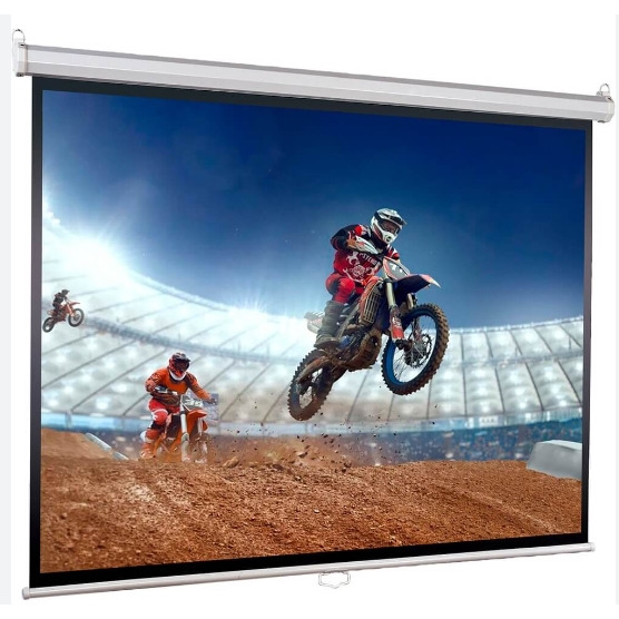 - Пружинный механизм позволяет фиксировать полотно на любой высоте и препятствует самораскрытию экрана.