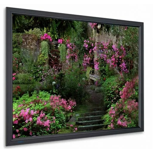 Высококлассный экран класса люкс со стационарной рамой, со скошенной бархатной рамой и широким выбором различных типов полотен