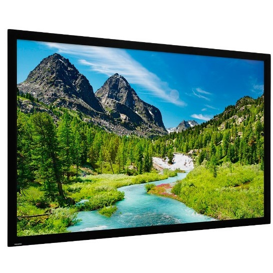 - Плоская алюминиевая рама экрана HomeScreen Deluxe покрыта черным бархатом, устраняющим отражение и служащим для поглощения проекционного света.