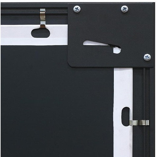 Благодаря простой конструкции экран легко собирается и разбирается, а настенные крепления, входящие в комплект, позволяют сразу повесить экран ViewScreen Omega на стену. Рама сделана из алюминия, ее ширина 80мм. По внутреннему периметру рамы есть специальные скосы, которые позволяют избежать появления теней на изображении.