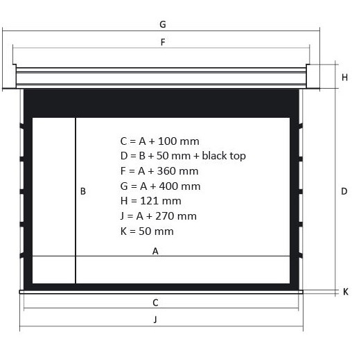 Экран Kauber InCeiling Tensioned BT Cinema, 104" 16:9 Clear Vision, область просмотра 129x230 см. дроп 70 см., длина корпуса 270 см.