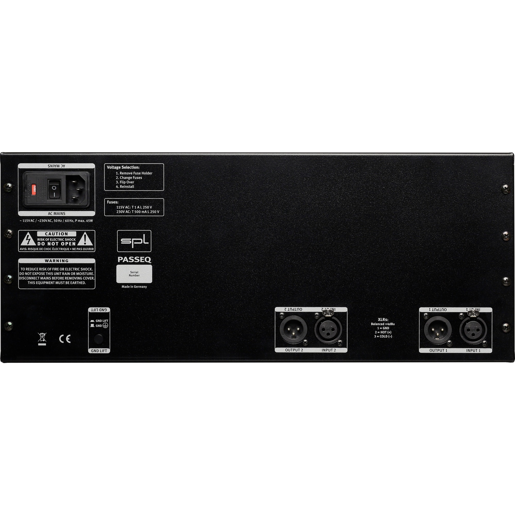SPL Passeq - самый мощный пассивный эквалайзер из когда-либо произведенных. Passeq имеет классическую конструкцию с пассивными катушечными фильтрами и прекрасно удовлетворяет самые высокие ожидания во всех областях обработки звука, от записи и микширования до мастеринга и воспроизведения. Инструментальный усилитель, бестрансформаторный, электроннобалансный с номинальным входнім уровнем +4 дБu. Коэффициент нелинейных искажений + Шум (при 0 дБu входного уровня)составляет 110 дБu. Питание происходит через тороидальный трансформатор 48 ВА, предохранители 500 мА/230 В, 1 А/115 В, выбор напряжения 115 В / 230 В. Потребляемая мощность устройства 40 Вт.