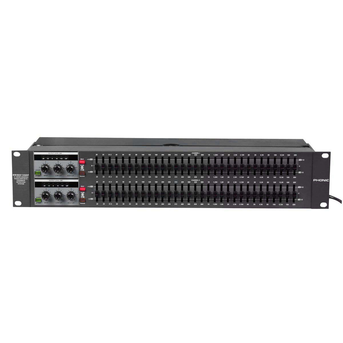 GEQ3102F Phonic правильный выбор эквалайзера для звукооператора — двухканальный, 31-полосный эквалайзер, который предлагает 6 или 12 дБ ослабления или усиления, со стандартными частотами ISO от 20 Гц до 20 кГц.