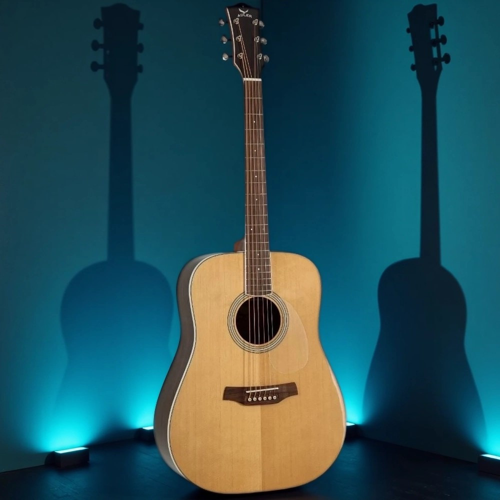 Электроакустическая гитара дредноут, верхняя дека массив ситхинской ели, корпус пао