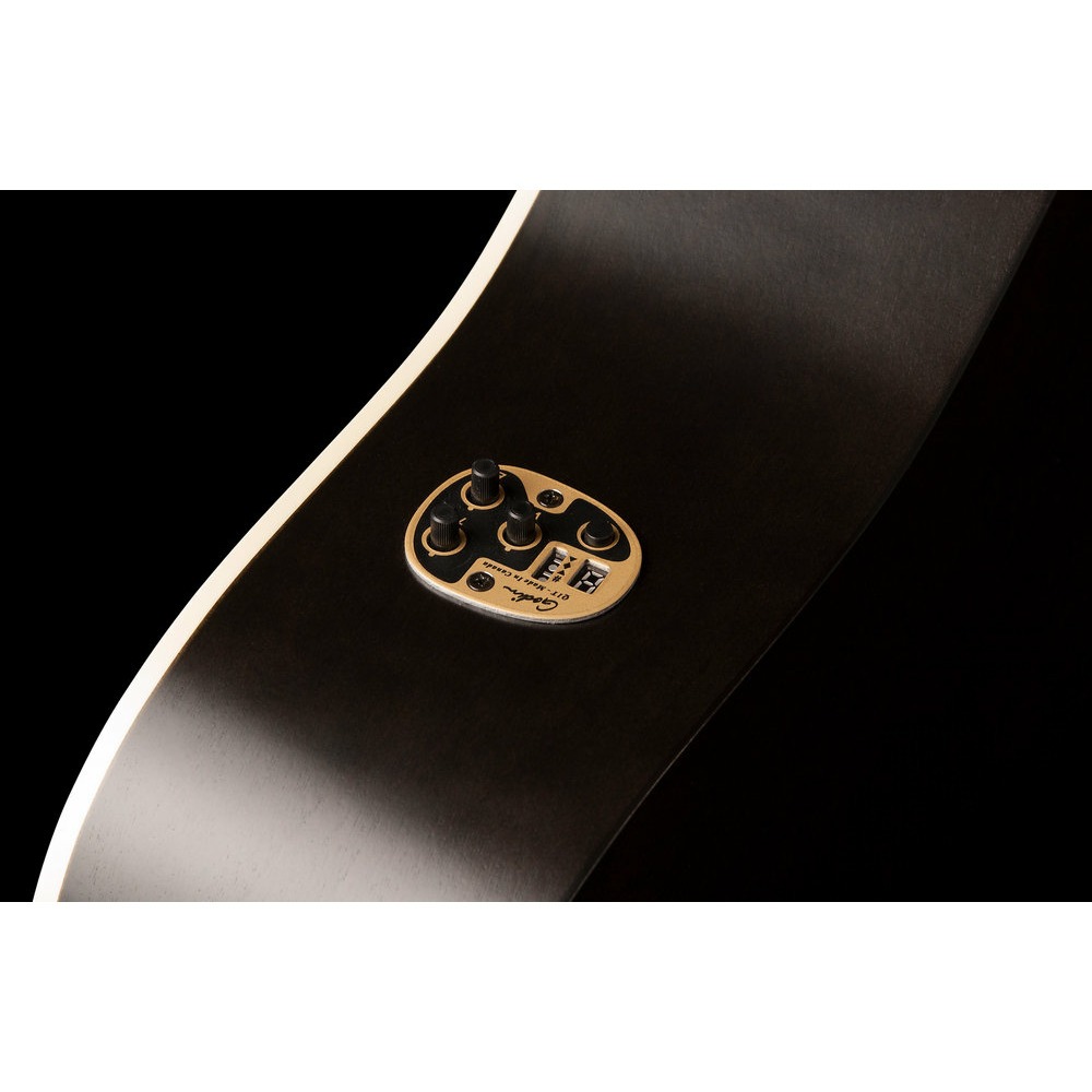 Сохраняя вековые традиции универсальности дредноутов, электро-акустическая гитара Art & Lutherie Americana Faded Black QIT представляет собой заново изобретенную классику. Лучше всего этот инструмент можно описать как на треть рабочая лошадка за ее долговечность, а на две трети — чистокровный жеребц за изысканное звучание и артикуляцию. Она на имеет корпус популярной формы "дредноут", обеспечивающей мощное, громкое и объемное звучание. Верхняя дека выполнена из массива ели, а нижняя дека и обечайки - из дикой вишни. Гриф сделан из серебристого клена и имеет накладку из палисандра (21 лад). У грифа двухсторонний анкер для настройки оптимального угла прогиба. Здесь установлен звукосниматель Godin Q1T со встроенным тюнером. Порожки гитары - графитовые Graphtech Tusq, гарантирующие правильную интонацию всех нот и длительный сустейн. Колки - открытые, с передаточным числом 18:1.