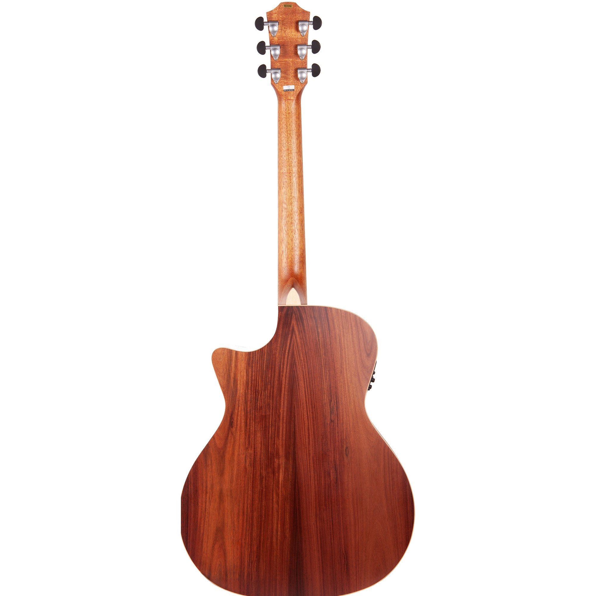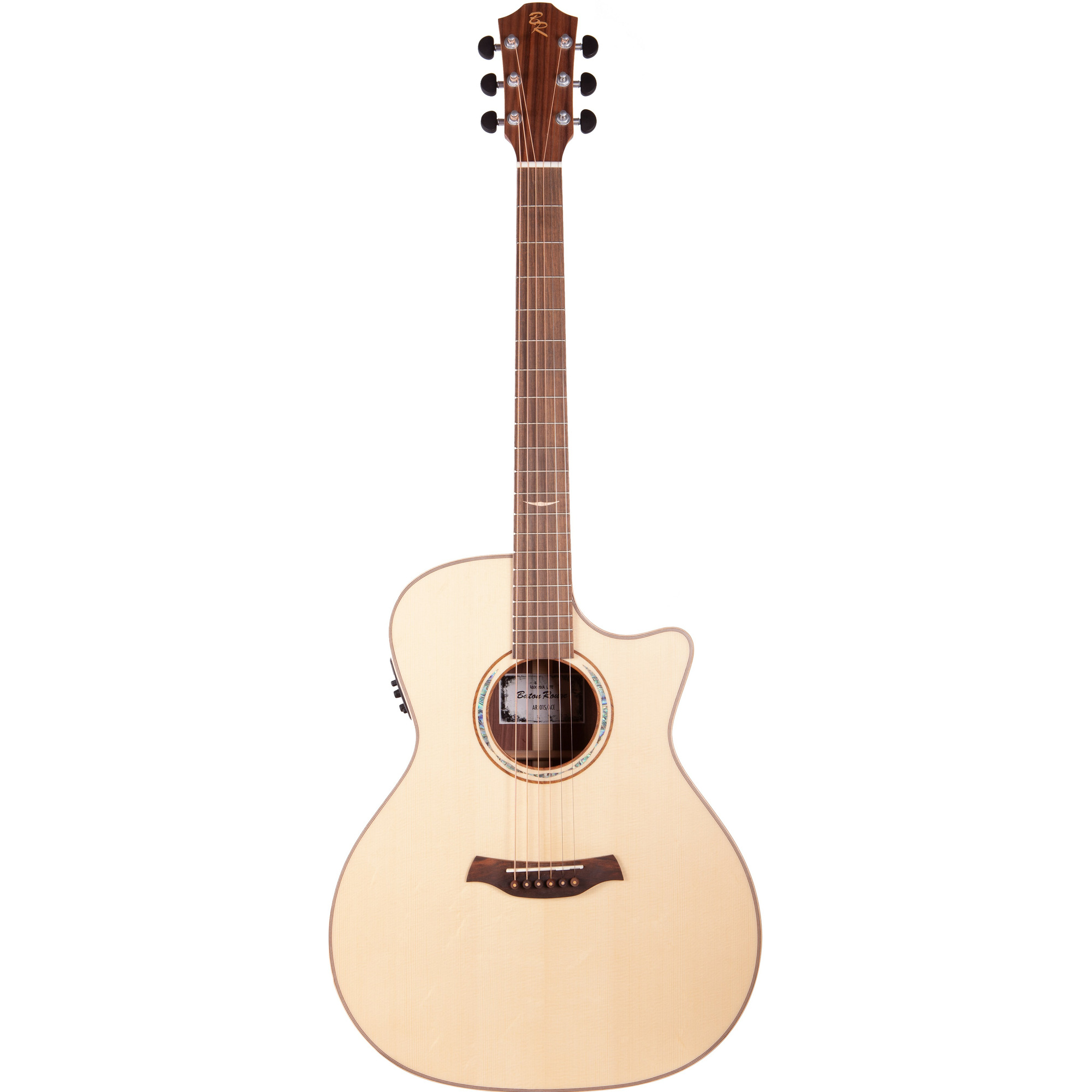 BATON ROUGE AR101S/ACE – электроакустическая гитара с катавеем серии Auditorium. Верхняя дека выполнена в корпусе из цельной немецкой ели, задняя дека и обечайки – из цельной древесины Пау Ферро (Pau Ferro). Гриф изготовлен из обычного красного дерева, накладка на гриф и сам бридж – из овангкола. У гитары 20 ладов, а верхний и нижний порожек (43 мм) выполнены из материала Nubone: упрощенная разновидность материала TUSQ, которая лучше гасит вибрацию струн, лучше передает частоты и гармоники, увеличивает объем звука и обогащает тон.