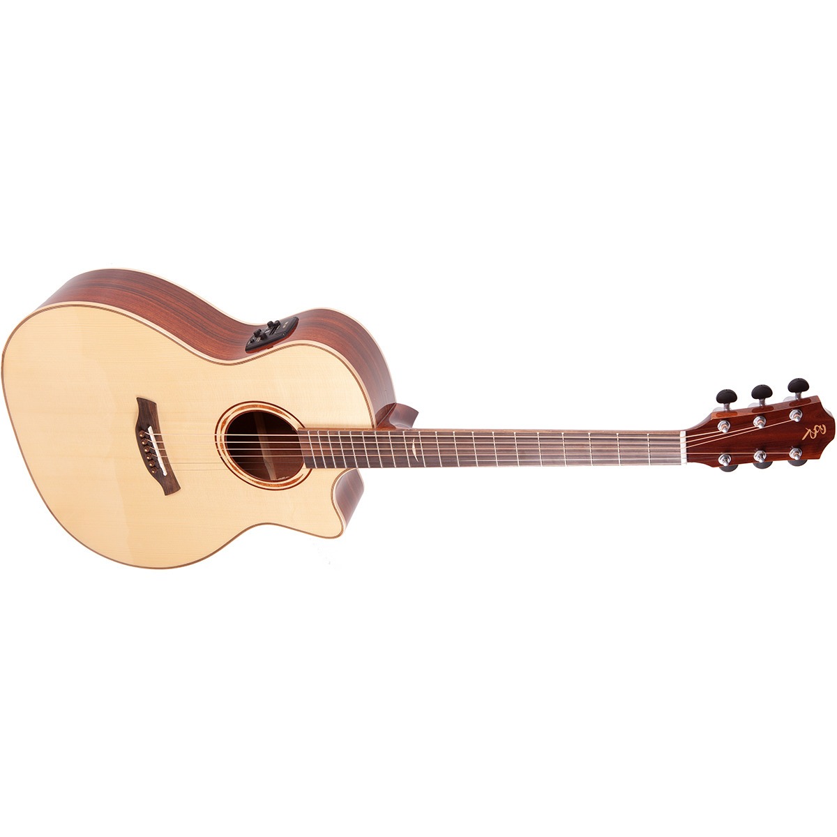 BATON ROUGE AR55S/ACE – электроакустическая гитара с катавеем серии Auditorium. Верхняя дека выполнена в корпусе из цельной немецкой ели, задняя дека и обечайки – из древесины Пау Ферро (Pau Ferro). Гриф изготовлен из обычного красного дерева, накладка на гриф и сам бридж – из овангкола. У гитары 20 ладов, а верхний и нижний порожек (43 мм) выполнены из материала Nubone: упрощенная разновидность материала TUSQ, которая лучше гасит вибрацию струн, лучше передает частоты и гармоники, увеличивает объем звука и обогащает тон.