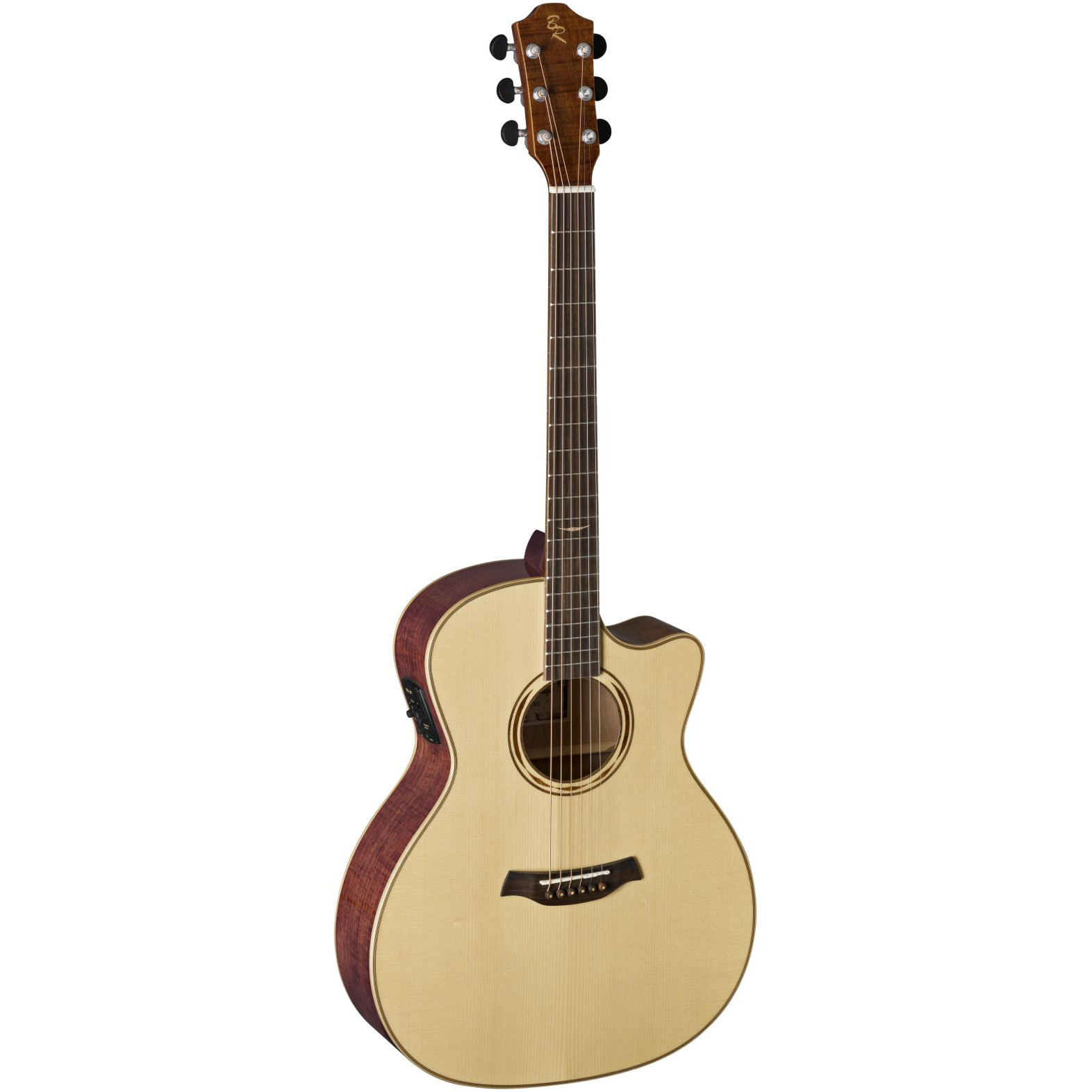 BATON ROUGE AR65S/ACE – электроакустическая гитара с катавеем серии Auditorium. Верхняя дека выполнена в корпусе из цельной немецкой ели, задняя дека и обечайки – из экзотического красного дерева. Гриф изготовлен из обычного красного дерева, накладка на гриф и сам бридж – из овангкола. У гитары 20 ладов, а верхний и нижний порожек (43 мм) выполнены из материала Nubone: упрощенная разновидность материала TUSQ, которая лучше гасит вибрацию струн, лучше передает частоты и гармоники, увеличивает объем звука и обогащает тон.