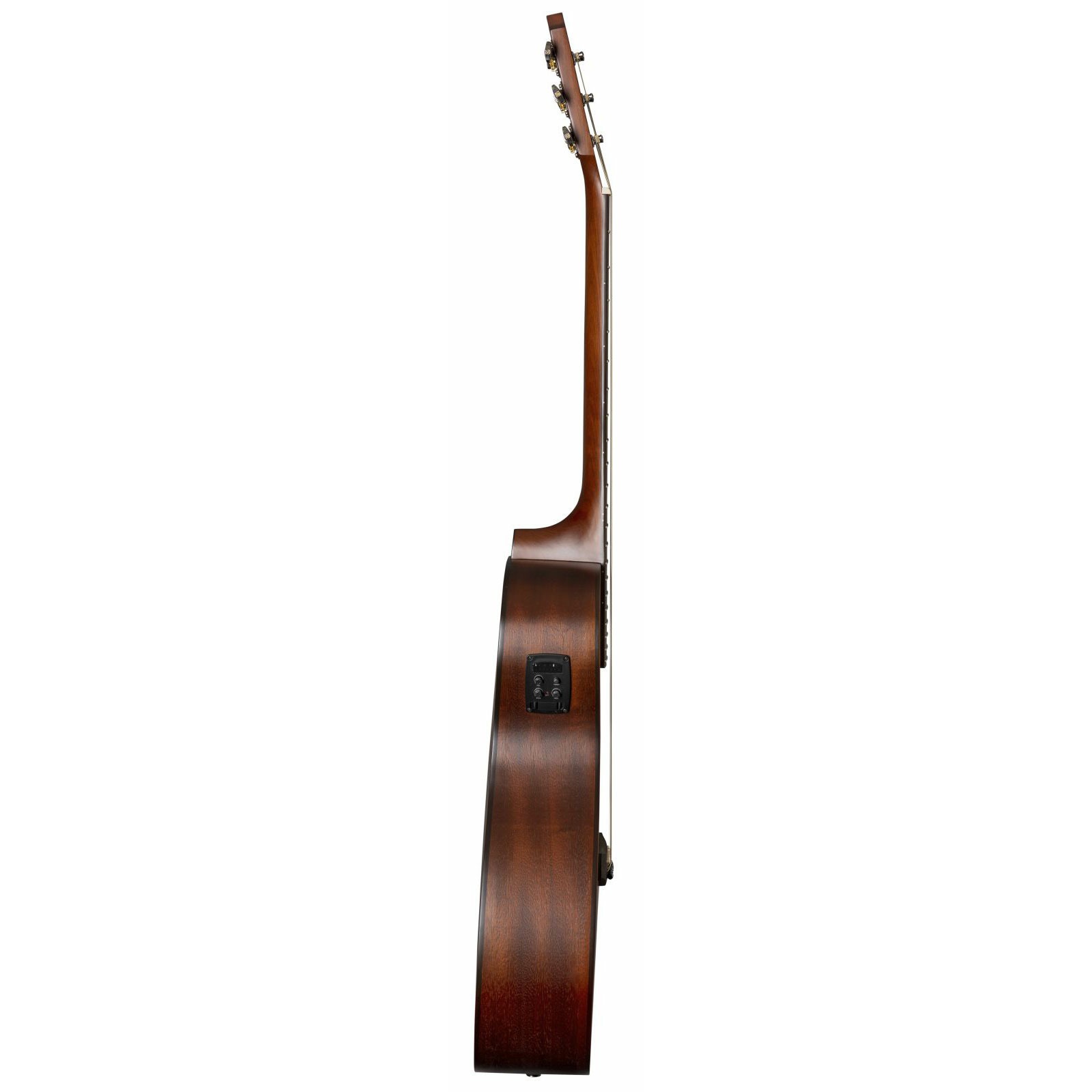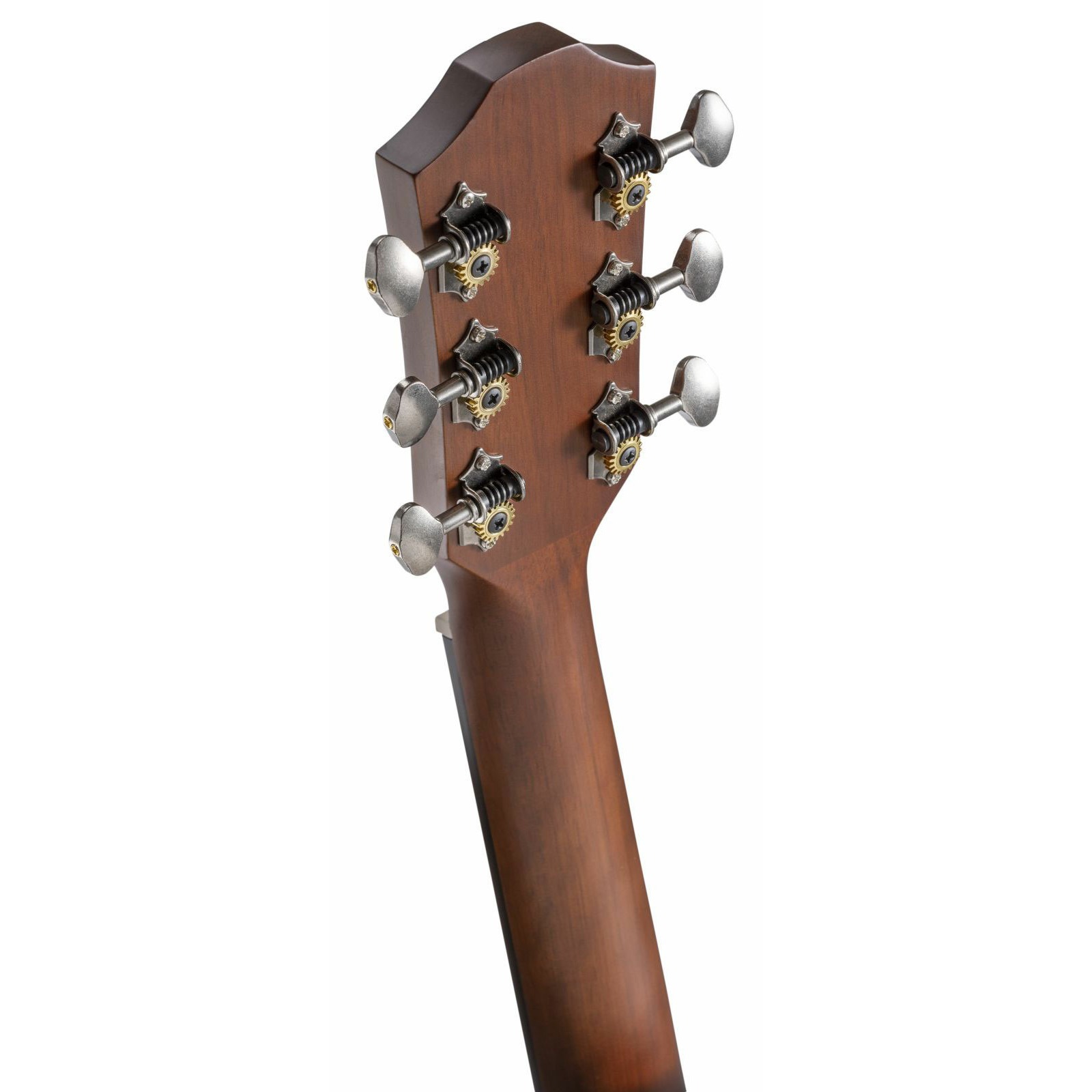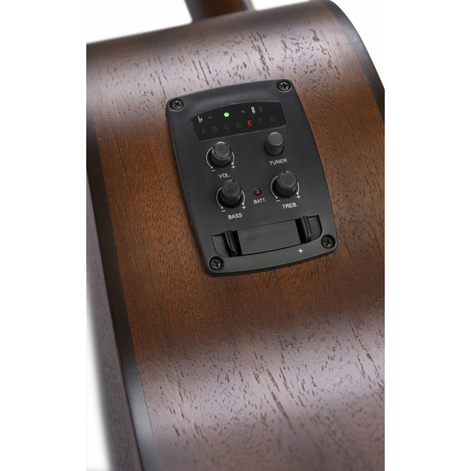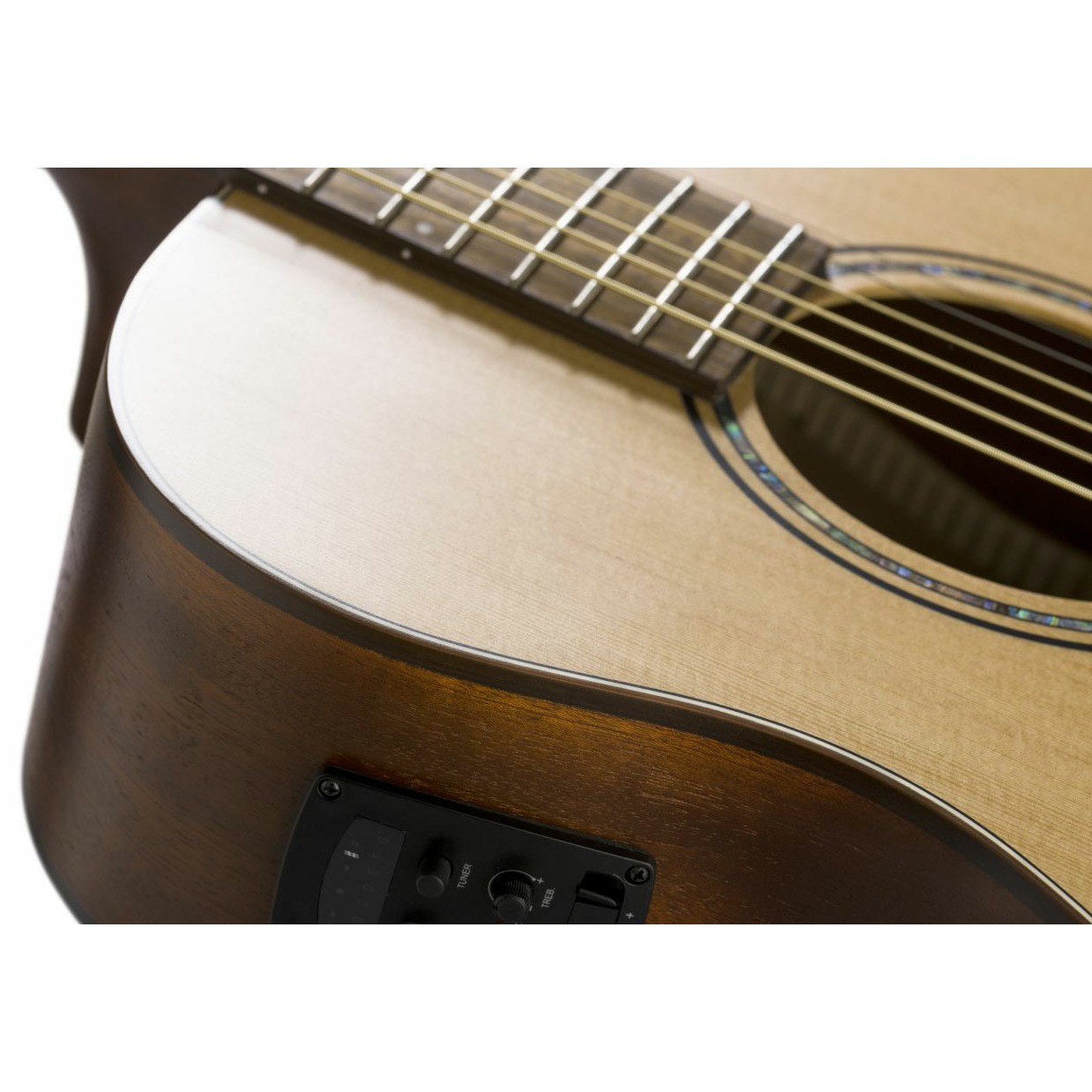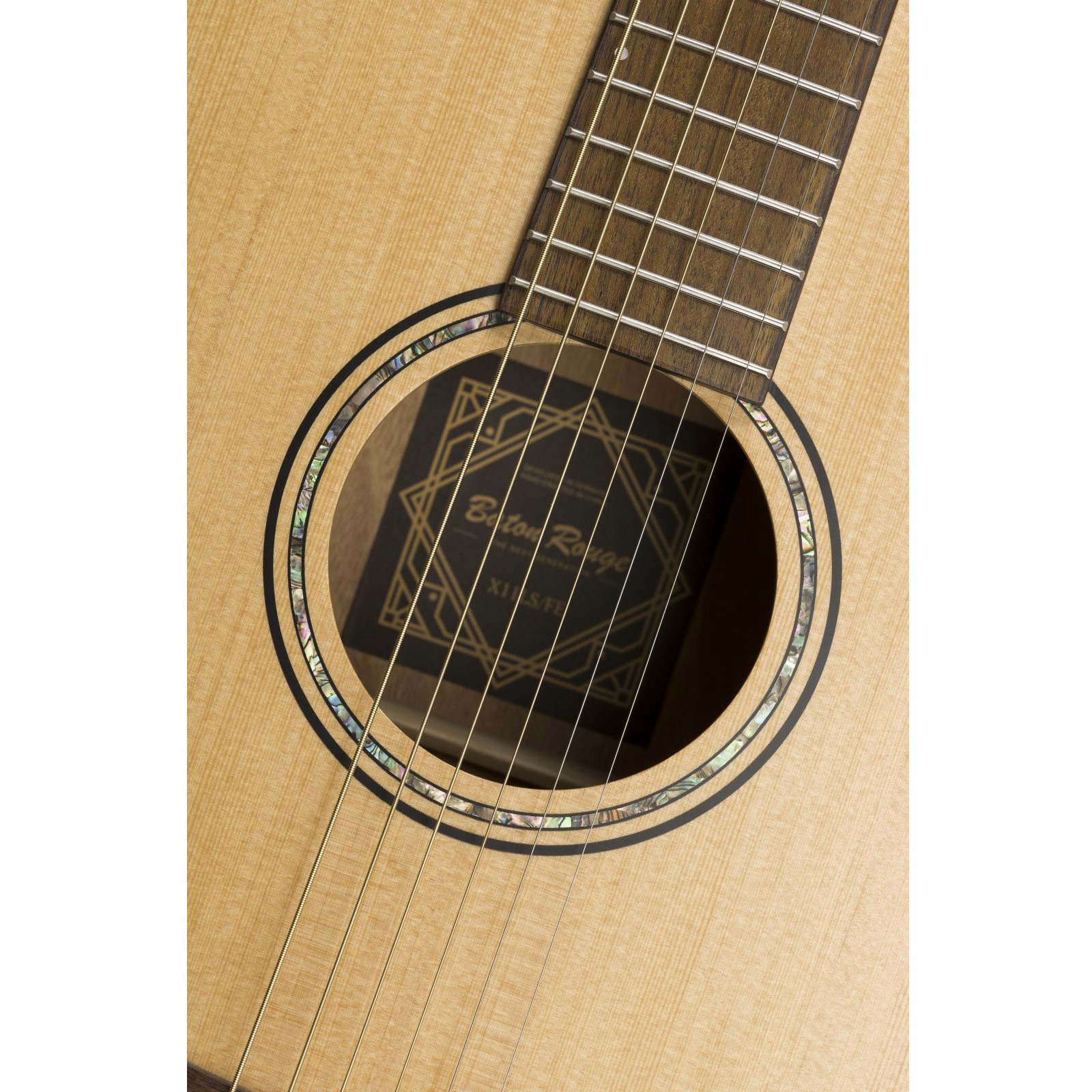 BATON ROUGE X11LS/FE – электроакустическая гитара в корпусе типа фолк. Верхняя дека выполнена из ели, задняя дека и обечайки – из красного дерева. Данное сочетание материалов делает тембр гитары ярким и звонким. Гриф также сделан из красного дерева, накладка на гриф и сам бридж – из овангкола. У гитары 21 лад, а верхний и нижний порожек (46 мм) выполнены из материала Nubone: упрощенная разновидность материала TUSQ, которая лучше гасит вибрацию струн, лучше передает частоты и гармоники, увеличивает объем звука и обогащает тон.