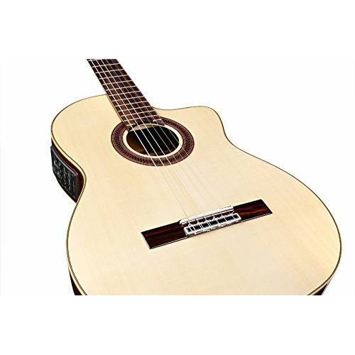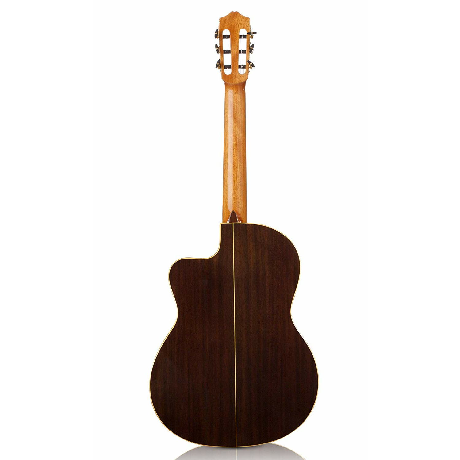 CORDOBA IBERIA GK Studio Negra – электроакустическая гитара с нейлоновыми струнами, великолепный инструмент для концертных выступлений. Это гитара с верхней декой из цельной древесины европейской ели, нижней декой и обечайкой из индийского палисандра. Она заключена в корпус с плавным вырезом и звукоснимателем Fishman Presys Blend. GK Studio Negra – гитара фламенко с корпусом уменьшенной глубины, более тонким грифом и меньшей шириной порожка по сравнению с классическими испанскими гитарами. Она создана специально для выступлений на сцене. Конструкция грифа предназначена для минимального натяжения для комфорта при игре и удобства скоростной игры. Эта гитара прекрасно подходит для игры фламенко. По сравнению с гитарами «blanca», выдающими яркое, резкое звучание, её звук более густой и мощный, с усиленными низкими частотами. GK Studio Negra отлично подходит не только для игры фламенко, но и всем гитаристам, которые хотят получить новое, необычное звучание. Заключенная в корпус удобной формы, выполненный из классической комбинации музыкальных сортов древесины, эта гитара идеально подходит для того, чтобы открыть новые нюансы звучания инструментов с нейлоновыми струнами. Как и все гитары производства Cordoba, эта модель оснащена встроенным анкером двойного действия. Отличительные черты инструмента также включают накладку на гриф и бридж из палисандра, глянцевую отделку, прозрачный пикгард в стиле фламенко и струны премиального качества Savarez Cristal Corum. В комплекте с инструментом поставляется фирменный мягкий чехол.