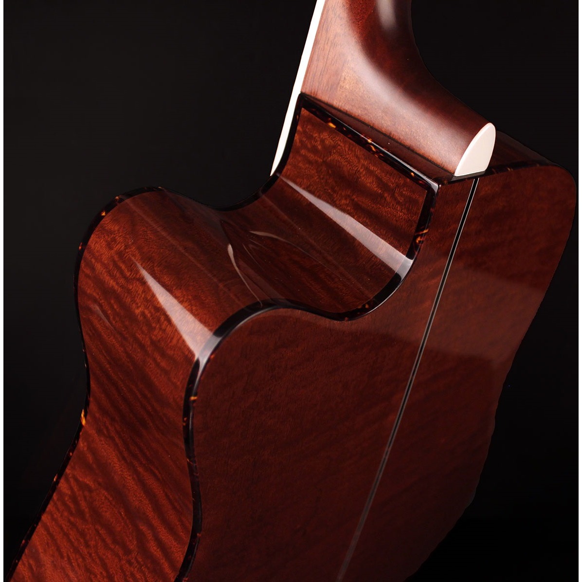 Корпус из красного дерева дополняет верхнюю деку как визуально, так и в плане звучания. Последним штрихом к внешнему виду инструмента является окантовка цвета черепашьего панциря.