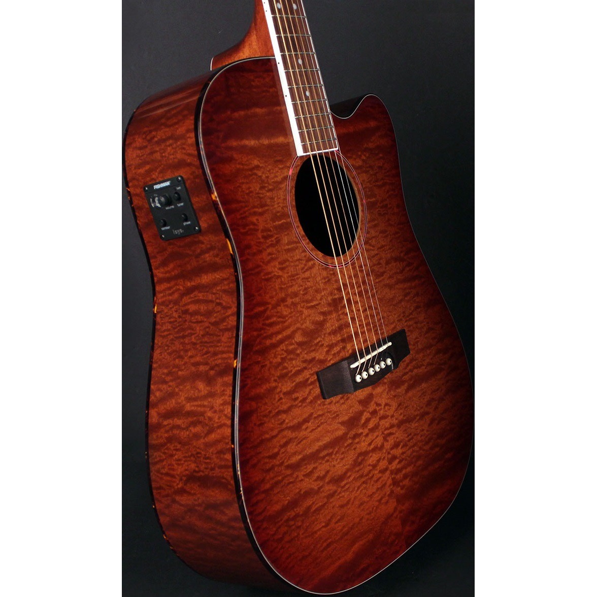 Гитара AD890MBCF с красивой отделкой, верхней декой из волнистого красного дерева, с теплым звучанием со сбалансированными средними частотами, инструмент идеальный как для игры аккордами, так и перебором. Еще большую универсальность гитаре придают порожки Graphtech Nubone XB и электроника Fishman Isys T.