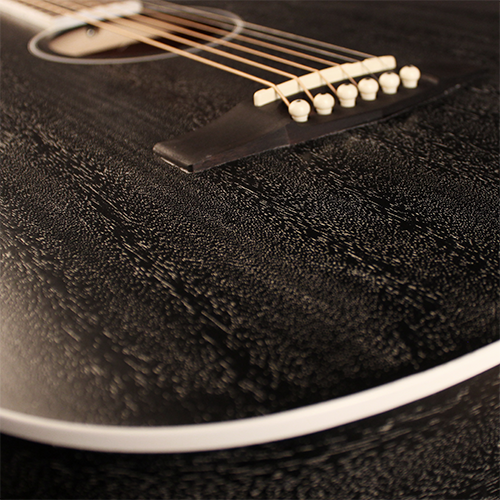Уникальная отделка с открытыми порами не только притягивает взгляды потрясающим сочетанием черного и белого цветов, но и обеспечивает музыканту прямой контакт с резонирующей древесиной.