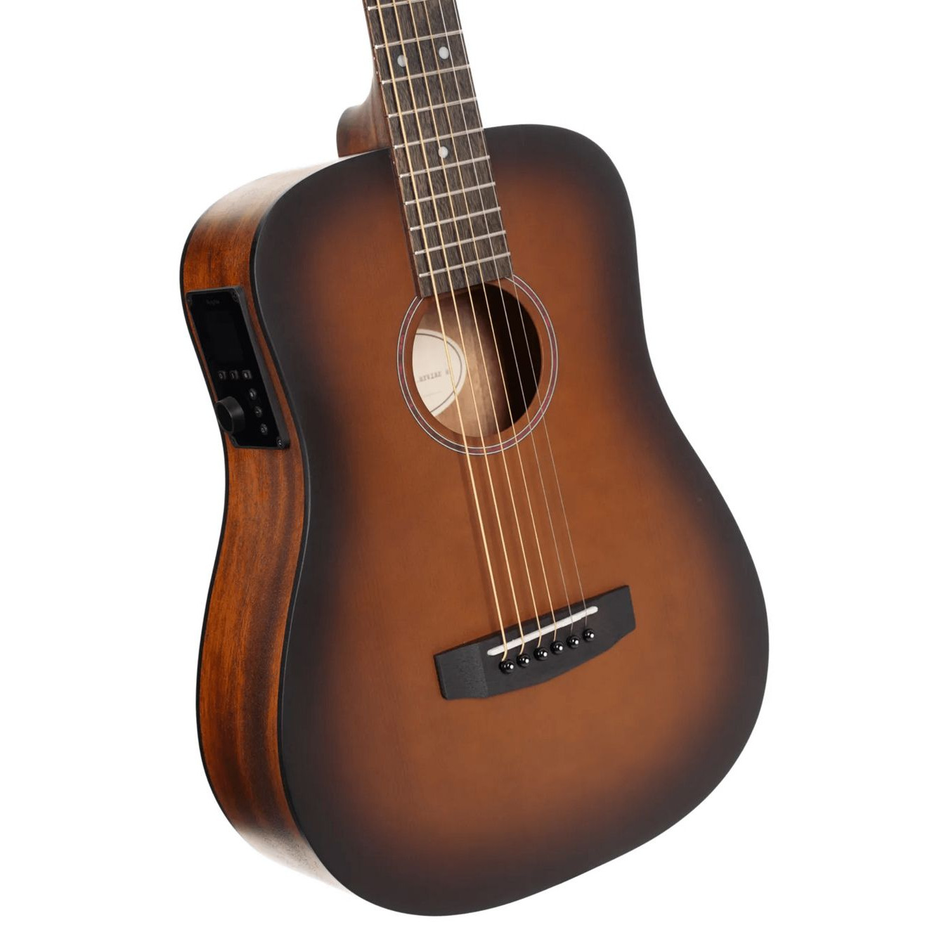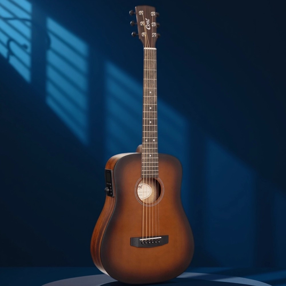 Компактные электроакустические гитары Cort Earth GO производят революцию в игре благодаря корпусу типа "дредноут" размером 3/4 и, что особенно важно, инновационной электронике HyVibe H2. Эта интеллектуальная система меняет правила игры, предлагая встроенный процессор эффектов, лупер, тюнер, метроном и совместимость с Bluetooth, что открывает совершенно новые возможности для музыкантов.