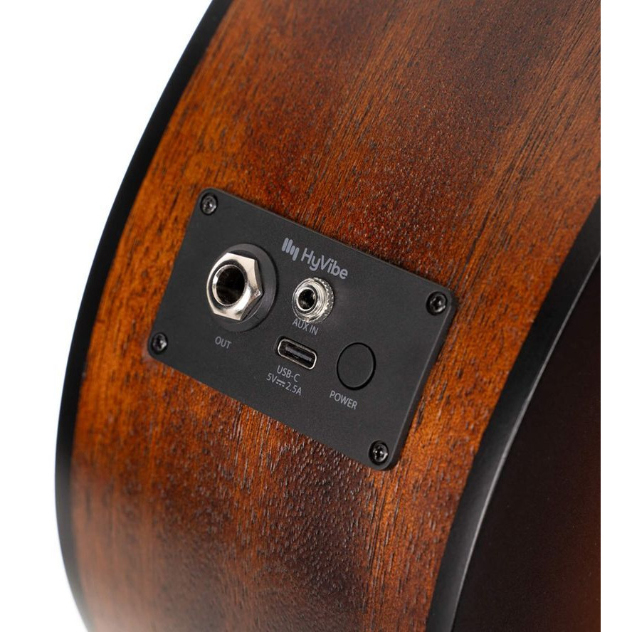 HyVibe H2 — ваш персональный музыкальный помощник. С революционным предусилителем HyVibe H2 ваша акустическая гитара превращается в современный интеллектуальный инструмент. Помимо таких эффектов, как реверберация, хорус, задержка, тремоло, октавер, фейзер и дисторшн, вы также найдете лупер, тюнер и метроном. Совместимость с Bluetooth позволит вам без труда импровизировать под любимые фонограммы. Кроме того, мобильное приложение HyVibe позволяет создавать собственные банки эффектов и точно настраивать звучание вашей гитары. Встроенный литий-ионный аккумулятор обеспечивает до десяти часов непрерывной игры на одном заряде и удобную зарядку через порт USB-C на панели выходов, которая также оснащена стандартным разъемом jack, аудиовходом TRS 3,5 мм и выключателем питания.