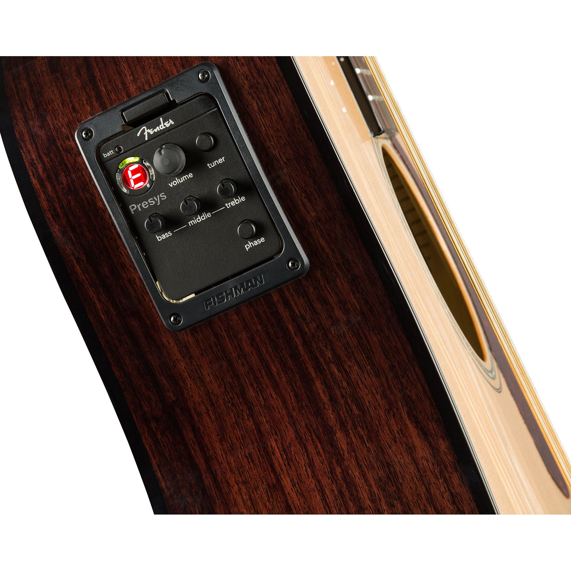 FENDER CD-140SCE DREAD 12 NAT W/C - это 12-струнная электроакустическая гитара с декой Dreadnought, которая имеет вырез под руку гитариста. Это облегчает доступ к последним ладам грифа. Этот инструмент сочетает в себе прекрасное звучание и изысканный стиль, который разработали мастера именитого бренда Fender. Все это сделано для того, что-бы создать очень гибкой и вдохновляющий инструмент для исполнения самой разной музыки. Гитара подходит для игры пальцами - "фингер-стайл". Она выдает приятный, насыщенный, сбалансированный тон, дает гитаристу комфортные ощущения при игре. Цвет гитары натуральный.