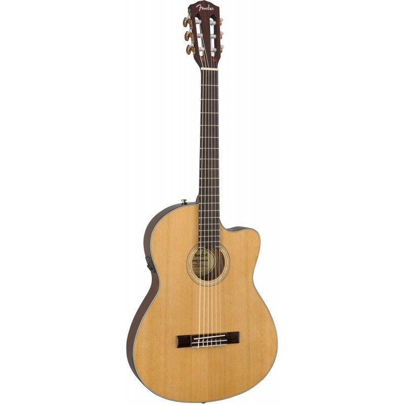 FENDER CN-140SCE – электроакустическая гитара в корпусе Concert с удобным вырезом из линейки Classic Design CN от знаменитого американского гитарного бренда. Особенность представленной модели – это удобство при игре и уникальный звук, что достигается благодаря использованию нейлоновых струн при расстоянии между ними – как для стальных. FENDER CN-140SCE обладает красивым, насыщенным, объемным звуком, характерным для классических акустических гитар, при этом мягкие нейлоновые струны делают эту модель удобной для начинающих музыкантов. Верхняя дека гитары сделана из массива кедра. Корпус CN-140SCE – из ламинированного палисандра. Ещё одна особенность инструмента: широкий гриф, обычно использующийся в конструкции классических акустических гитар, в случае этой модели был заменён на удобный при игре гриф Fender® 'Easy-to-Play' из красного дерева - такой же, как у всех гитар серии Classic Design. Мензура - 25.3” (643 миллиметров). Накладка – из палисандра, с инкрустацией ладов только сбоку. Бридж – также палисандровый. Высококачественная электроника – звукосниматель Fishman® Presys с активным предусилителем и встроенным тюнером позволяет получить очень естественное звучание при подключении. Представленная модель CN-140SCE NAT - натурального цвета с глянцевым покрытием, без пикгарда, хромированной фурнитурой. На гитаре установлены фирменные нейлоновые струны Classical Tie-End толщиной .028-.043. В комплекте поставляется жесткий кейс.